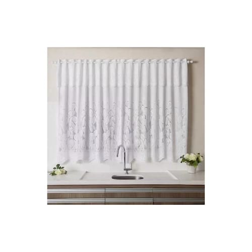 A Cortina para Cozinha Interlar 280x150 cm Renda Tulipinha com Bandô Branco é uma cortina em estilo renda com uma linda estampa com tulipinhas para inspirar a sensação relaxante de estar em um jardim. Apresenta um bandô de 30 centímetros que incrementa um toque extra de requinte. Com um excelente acabamento e design sofisticado, essa cortina é garantia de chamar a atenção pela beleza e bom gosto. É confeccionada com um material sintético que garante uma maior durabilidade e praticidade. Quando pensamos em mudar a decoração, logo vem a cabeça ambientes como quarto e sala. Mas o espaço dentro de casa com maior convívio é a cozinha. E por isso ela precisa estar decorada de uma maneira harmoniosa. Eletrodomésticos e móveis são itens difíceis para trocar. Uma dica simples é apostar nas cortinas.- Contém : 1 cortina em renda para varão- Tamanho : Cortina - 2,80m (Largura) x 1,50m (Altura) x 0,30m (Bando)- Composição : 100% poliéster- Marca: Interlar - OBS: Não acompanha varão