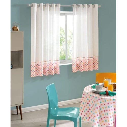 A cortina É uma peça que pode dar uma nova cara ao cômodo, além de deixar Elementos do ambiente ainda mais acolhedor.Cortina para copa/cozinha, De fácil conservação, com ilhóses.