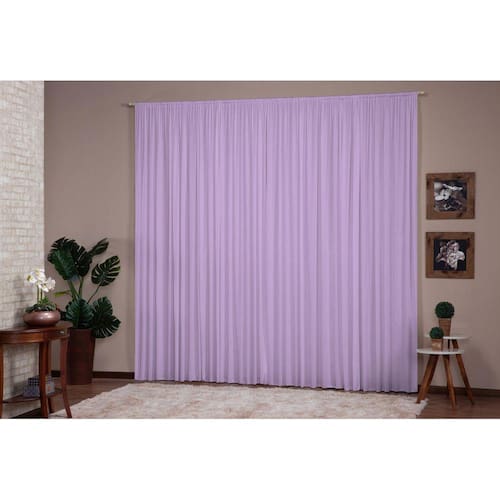 Cortina Para Decoração Sala Quarto 5,00X2,80 LilasFabricação própria 5 metros de largura franzida por 2,80 alturaComposição: tecido malha gel 100% poliésterOsb: não acompanha varão.Não é blecauteFácil lavagemNão necessita passarTecido malha gel 100% poliéster