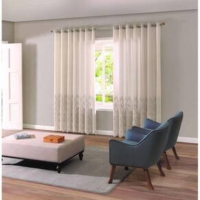 A Cortina Para Sala / Quarto Duplex Valência Barrada Bella Janela é feita de tecido 100% poliéster em voil bordado florar e barrado, com forro. As duas partes podem ser utilizadas no mesmo varão, ótimo para decorar quartos e salas ou escritórios. Essa cortina contém 28 ilhoses grossos e cromados para adicionar um toque de requinte.