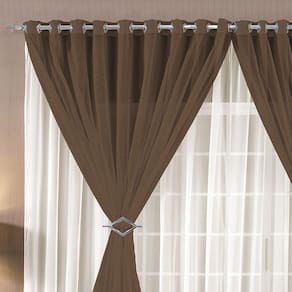 Seu design conta com ilhóses cromados, que conferem um acabamento sofisticado e moderno à cortina. Além disso, a Cortina Paula é acompanhada por um par de abraçadeiras cromadas, que não só adicionam charme, mas também permitem que você ajuste a cortina de forma prática e elegante.