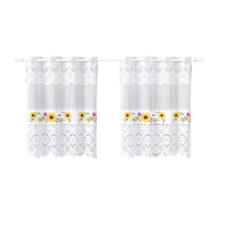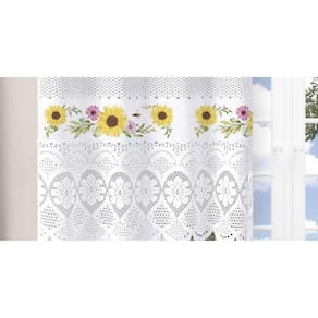 Cortina Pia Bando Vitro Formosa Renda Cozinha 1,60x0,80x0,20 Cor: Girassol Cortina de Renda indicado para Janela ou Pia com 1,60m de largura e 80cm de altura, ideal para varão com até 1,5 m de comprimento. A Linha Renda é leve, versátil, com lindos detalhes. Desenvolvido com uma técnica exclusiva de entrelaçamento dos fios, dando um toque charmoso e romântico ao ambiente. Composto por: 1 Cortina de Renda para Janela ou pia Interlar 1,60x80cm Tamanho: Largura: 1,60 m Altura: 80 cm Indicações: - Varão com Até 1,50 m de Comprimento; - Tipo do Suporte: Simples para 1 varão ; - Suportes e Varão não acompanham o Produto. Composição do Tecido: Renda 100% Poliéster