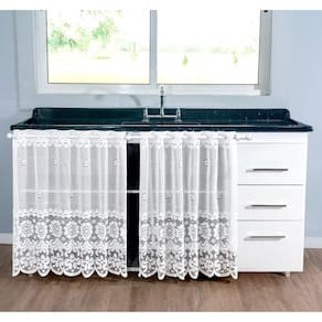 Cortina de Renda indicado para Janela ou Pia, com 1,60m de largura e 80cm de altura, ideal para varão com até 1,5 m de comprimento. A Linha Renda é leve, versátil, com lindos detalhes. Desenvolvido com uma técnica exclusiva de entrelaçamento dos fios, dando um toque charmoso e romântico ao ambiente. Composto por:1 Cortina de Renda para Janela ou pia Interlar 1,60x80cm Tamanho:Largura: 1,60 mAltura: 80 cm Indicações:- Varão com Até 1,50 m de Comprimento;- Tipo do Suporte: Simples (para 1 varão);- Suportes e Varão não acompanham o Produto. Composição do Tecido: Renda 100% Poliéster