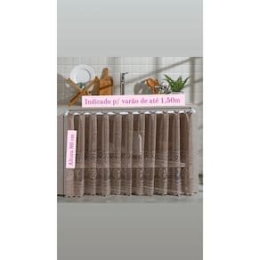 Cortina Pia Renda Valencia Desert Lisa 2,00Larg X0,80 Alt Cortina de Renda indicado para Janela ou Pia, com 2,00m de largura e 80cm de altura, ideal para varão com até 1,5 m de comprimento. A Linha Renda Valência é leve, versátil, com lindos detalhes. Desenvolvido com uma técnica exclusiva de entrelaçamento dos fios, dando um toque charmoso e romântico ao ambiente. Composto por: 1 Cortina de Renda para Janela ou pia Interlar 200x80cm Tamanho: Largura: 2,00 m Altura: 80 cm Linha: Valência Indicações: - Varão com Até 1,50 m de Comprimento; - Tipo do Suporte: Simples para 1 varão ; - Suportes e Varão não acompanham o Produto. Composição do Tecido: Renda 100% Poliéster Qual a medida ideal de cortina para a sua janela: A medida certa para sua cortina precisa ser no mínimo 30cm maior que a janela na largura e 45cm maior na altura. O varão deve ser fixado a 15cm da parte superior da janela, o suporte do varão ficará preso à parede na distância de 15cm das laterais da janela e as ponteiras a 5cm de cada suporte. Vantagens do Produto: - Cortina com passante; - Fácil de Lavar; - Decora o ambiente; - Resistência e durabilidade; - Ótimo caimento e acabamento. Marca: Não Informado Ean: 7895263758149