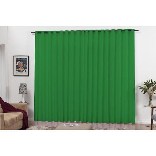 Consumo de Tecido: 3,00m x 2,50m Medidas Prontas: Largura 2,80m x Altura 2,50m Quantidade de Folhas: 2 Folhas de 1,40m x 2,50m Recomendável para varão simples de 2,00m a 2,50m com até 28mm.
