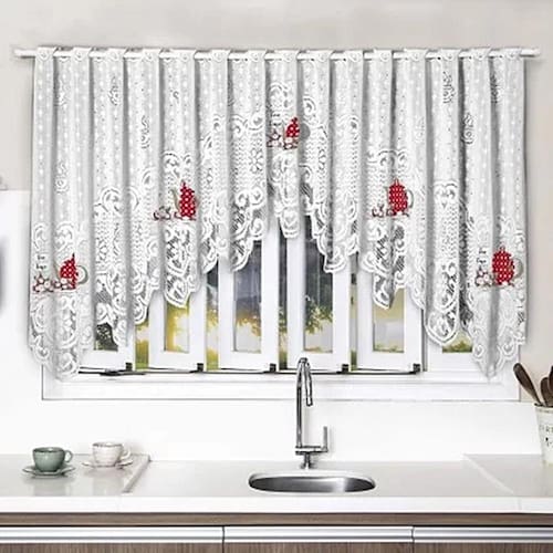 Cortina renda bando cascata 3,00 m x 1,00 m alt hora do chá Cor: creme Cortina para cozinha cascata renda bule 3,00 x 1,00m , a melhor cortina de renda, cortina para cozinha interlar é uma cortina em estilo renda com uma linda estampa para inspirar a sensação relaxante de estar em um jardim. Com um excelente acabamento e design sofisticado, essa cortina é garantia de chamar a atenção pela beleza e bom gosto. É confeccionada com um material sintético que garante uma maior durabilidade e praticidade. Informações - contém: 01 cortina para cozinha cascata em renda para varão - tamanho: cortina - 3,00 m largura x 1,00 - tamanho recomendado do varão - 2,00 m- composição: 100% poliéster - obs.: não acompanha varão Verifique as medidas antes da compra
