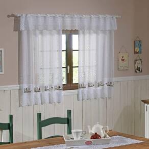 Cortina renda cozinha 2,00 x 1,20m coruja branca Cortina de renda interlar coruja branca a melhor renda que você vai encontrar ,renda grossa ,fechadinha garantimos a qualidade do produto, tem abertura no meio a cortina, porem o bando é reto e tem 30 cm de alt,