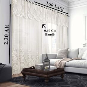 Cortina Renda Marfim com Bando 3,50 larg x 2,20 alt Sala A linha de Renda Clássica da Interlar é digna do luxo e beleza, foi elaborada especialmente para conferir sofisticação ao ambiente. O tecido rendado é leve e delicado, desenvolvido com uma técnica exclusiva de entrelaçamento dos fios, dando um toque charmoso e romântico a casa. Composto por: 1 cortina Renda Clássica com Bandô Irlanda Interlar 3,50x2,20 Mts Tamanho: Largura: 3,50 Mts Altura: 2,20 Mts Bando: 0,60 cm Indicações: - Varão com Até 2,50 Mts de Comprimento; - Tipo do Suporte: Simples para 1 varão ; - Suportes e Varão não acompanham o Produto. Composição do Tecido: 100% Poliéster Qual a medida ideal de cortina para a sua janela: A medida certa para sua cortina precisa ser no mínimo 30cm maior que a janela na largura e 45cm maior na altura. O varão deve ser fixado a 15cm da parte superior da janela, o suporte do varão ficará preso à parede na distância de 15cm das laterais da janela e as ponteiras a 5cm de cada suporte. Vantagens do Produto: - Cortina com passante; - Barra decorativa; - Fácil de Lavar; - Decora o ambiente; - Resistência e durabilidade; - Ótimo caimento e acabamento.