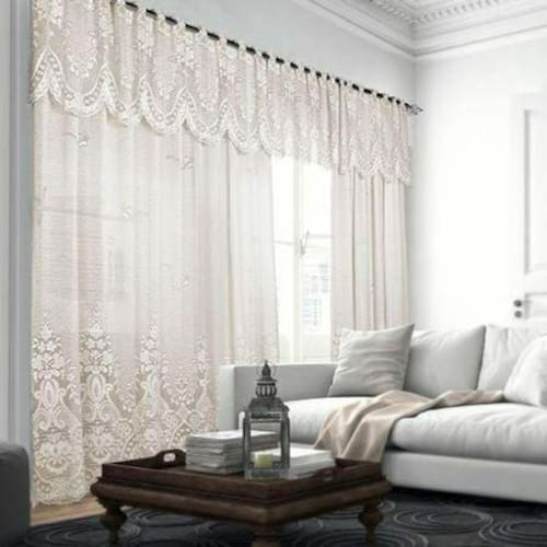 Cortina Renda Marfim com Bando 3,50 larg x 2,20 alt Sala A linha de Renda Clássica da Interlar é digna do luxo e beleza, foi elaborada especialmente para conferir sofisticação ao ambiente. O tecido rendado é leve e delicado, desenvolvido com uma técnica exclusiva de entrelaçamento dos fios, dando um toque charmoso e romântico a casa.