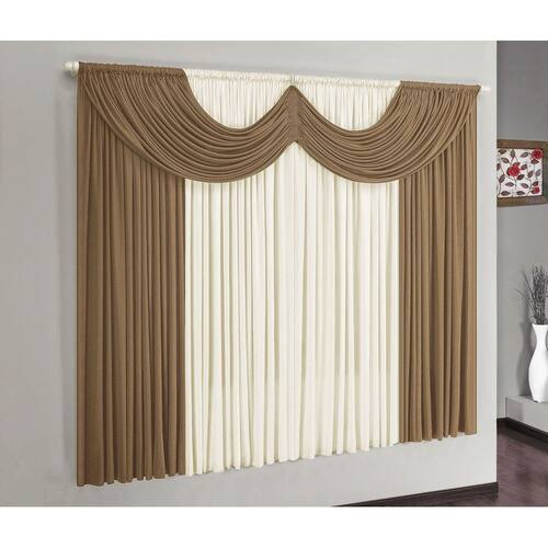 Cortina Riviera 2 Metros Avelã e Palha Contém: 1 Cortina 2,00m x 1,70m para varão simples Composição: Tecido: Malha Gel 100% Poliéster Cortina decorativa, não bloqueia a luz