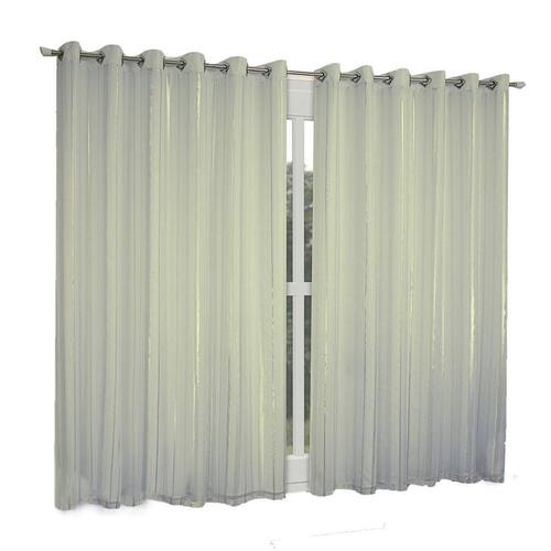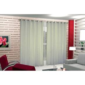 Contém: 01 cortina 2,70m altura x 4,00m largura no total, sendo: 02 partes de 2,70m altura x 2,10m largura com 24 ilhós cromados no total, sendo 12 de cada lado Indicada para varão simples de 3,00m de até 28mm Detalhe: consumo de tecido 4,00m largura por 2,70m altura