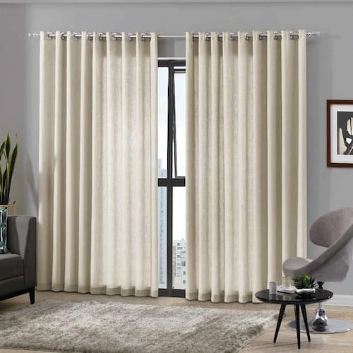 A Cortina Duplex Monaco é versátil e elegante! Confeccionada em poliéster, o modelo é composto por um voil decorativo com textura de linho e um corta luz em tecido que controla a luminosidade sem bloqueá-la totalmente, proporcionando conforto, privacidade e sofisticação para seu quarto ou sala. Conta com duas partes de 3,30m de largura e 2,50m de altura, com acabamento em bainha na lateral e na parte inferior em barra. Peça indicada para varão de 3,00m, contendo 46 ilhoses. Foto ilustrativa, não acompanha varão.