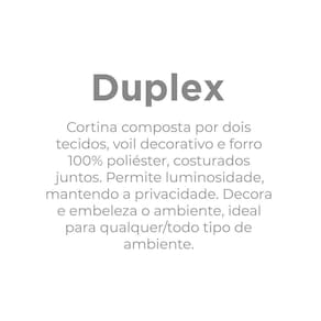Privacidade e luminosidade combinadas na Cortina Duplex! Prática e elegante, essa opção é ideal para salas de TV e quartos. Feita em tecido liso 100% poliéster, com forro também em poliéster, ambas as camadas no mesmo varão. Toque de glamour e estilo clássico para o ambiente. Composto por 2 partes de 1,50m de largura por 1,70m de altura, indicada para varões de1,50m até 2,00m com 20 ilhoses. Adicione beleza e aconchego à sua casa com a Cortina Duplex. Perfeita para decorar sua sala ou quarto. Adquira já a sua!