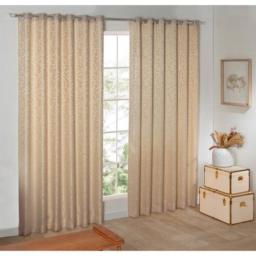 Cortina sala quarto semi blackout bege 4,00x2,50 sultan Cortina de sala e quarto em tecido jacquard folhas romanticas 4,00x2,50 sultan