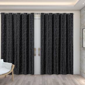 Cortina Sala Quarto Semi Blackout Jacquard Preto 6,00X2,80