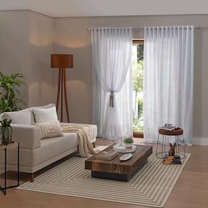O tecido rendado é leve e delicado, desenvolvido com uma técnica exclusiva de entrelaçamento dos fios, dando um toque charmoso e romântico a casa.