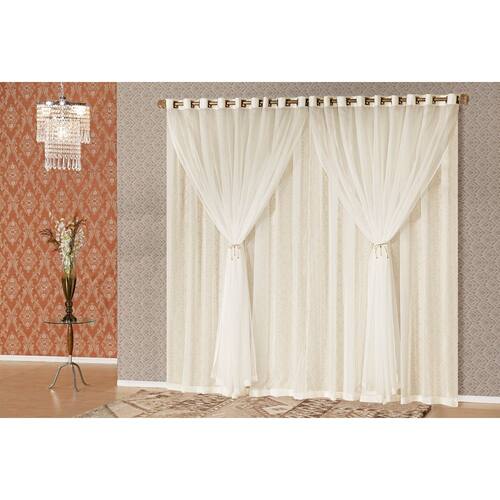 Cortina Sara Para Varão com Ilhós 4,00m X 2,70m. 01 cortina 4,00m de largura x 2,70m de altura Consumo do tecido: 7,50m. Composição: 100% poliéster Não acompanha o varão.