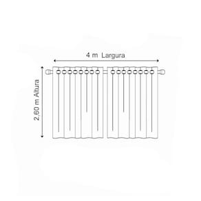 01 cortina 4,00 metros x 2,60 metros semi blackout Consumo de tecido: 02 folhas de 2,00 metros de largura x 2,60 de altura, com 24 ilhós cromado, sendo 12 em cada parte. Indicado para varão simples de 3 metros ou varão de 3,5 metros.