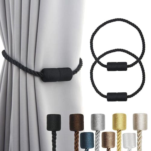 - Pacote com 2 lindas amarras de cortina magnética de corda, peso de 1 pacote: 0,12 libras, comprimento total - 17,5 polegadas, diâmetro da corda - 0,4". Pode ser torcido para ajustar o comprimento de acordo com suas necessidades, então não precisa se preocupar com o tamanho ser muito grande, adequado para cortinas finas, cortinas transparentes e cortinas de chuveiro grossas. Você pode consultar os vários métodos de agrupamento mostrados em nossas fotos.