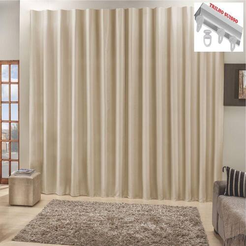 Cortina Top Chick 4 Metros Sala Quarto Tecido Ráfia Trilho Suisso