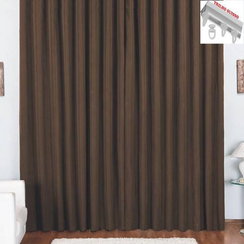Cortina Tóquio Para Trilho Suisso Max Tecido Oxford 3,00M X 2,80M Janela Quarto Sala - Marrom