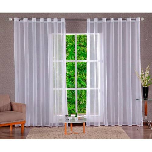 Linda Cortina para Sala ou Quarto Medidas Prontas: Largura 4,00m x Altura 2,50m Dividida em 2 partes de 2,00m x 2,50m Tecido: Voil liso / 100% Poliéster Cor: Branco Acabamento feito na Bainha Ilhós Cromado, indicado para Varão de 28mm Cortina ideal para Varão de até 2,5m Não acompanha o Varão Esta Cortina é de Voil, não forrada Cortina Transparente Marca: Confeccoes Elba