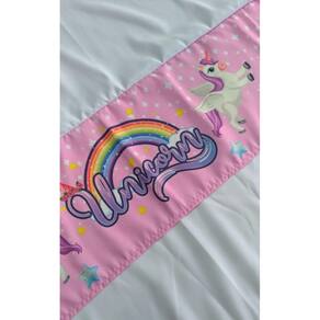 Cortina Unicórnio Quarto De Menina Princesa Branco com Rosa 2,60 L x 1,70 A