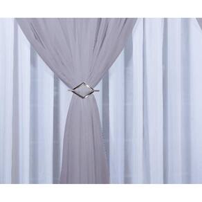 Contém na embalagem: 01 cortina com forro 10,00m largura x 2,80m altura 02 fivelas decorativas cromadas Ilhós redondo cromado em toda parte superior