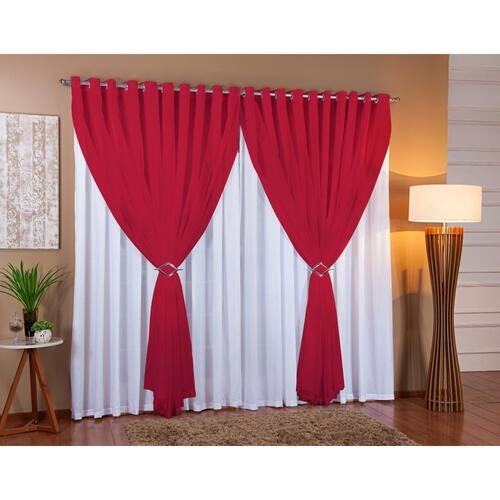Contém na embalagem: 01 cortina com forro 6,00m largura x 2,00m altura 02 fivelas decorativas cromadas Ilhós redondo cromado em toda parte superior
