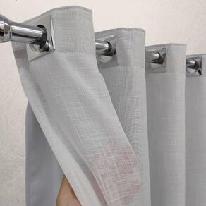 Cortina Blackout é ideal para controlar a claridade, bloquear a vista, embelezar a decoração do ambiente e manter a temperatura. Medidas Prontas: Largura 2,80m x Altura 2,30m Dividida em 2 partes de 1,40m x 2,30m Tecido: Voil Linho com Forro Blackout Cor: Branco Gelo Acabamento feito na Bainha Ilhós Cromado, indicado para Varão de 28mm Cortina ideal para Varão de até 2,0m Atenção: essa cortina não é em PVC, e sim Tecido