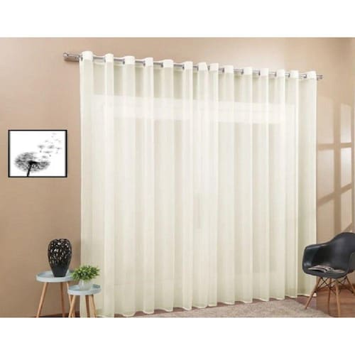 Cortina em tecido voil, os ilhós são redondos, tecido com excelente caimento.