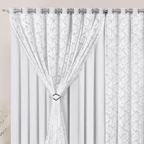 A Cortina Yasmin é uma escolha elegante e sofisticada para decorar o seu ambiente. Com um design encantador, ela combina o forro em malha gel com a parte frontal em renda floral, criando um contraste harmonioso entre os tecidos.