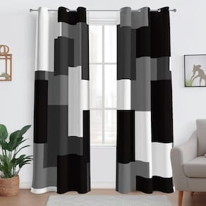 Cortinas blackout modernas 100% blackout - Cortinhas blackout 100% padronizadas: feitas de tecido de poliéster premium que é macio. Cada pacote inclui 2 painéis de cortinas escurecidas com design, cada painel mede 107 x 160 cm de comprimento. Cada painel de cortina tem 6 argolas superiores de prata (diâmetro do ilhó: 4 cm). Sugerimos escolher o tamanho certo depois de medir suas janelas. - Bloqueio de luz eficaz: nossas cortinas blackout geométricas brancas e cinza com costas pretas podem bloquear completamente 100% da luz solar, mesmo durante os dias mais ensolarados. Oferece a você um ambiente escuro para desfrutar de seus filmes favoritos ou dormir bem. Perfeita para aqueles que valorizam a privacidade completa e querem criar um ambiente tranquilo e relaxante em sua casa. - CORTINAS À PROVA DE SOM DE ISOLAMENTO TÉRMICO: Nossas elegantes cortinas com isolamento térmico com estampa xadrez cinza profundo podem equilibrar bem as temperaturas internas e externas, reter o calor em ambientes internos durante o inverno e rejeitar o calor no verão e efetivamente economizar energia. Além disso, reduz o ruído e total privacidade, proporcionando um ambiente tranquilo e tranquilo para você relaxar. - CORTINAS DE DESIGN ESTÉTICO CONTEMPORÂNEO: Cortinas e cortinas de padrão geométrico abstrato moderno fazem uma declaração com suas linhas limpas, cores sutis e motivos geométricos, adicionando um toque de elegância contemporânea a qualquer espaço de vida. Nossas cortinas vão animar a decoração da sua casa imediatamente, perfeitas para sala de estar, quarto, sala de família, sala de jantar, cozinha, casa de fazenda, estúdio, quarto das crianças. - Fácil de cuidar: nossas cortinas blackout estampadas de geometria minimalista são fáceis de manter. Lavar à máquina ou à mão em água fria, ciclo delicado, não usar alvejante, secar em temperatura baixa. Cortinas de qualidade resistirão aos tempos de uso.