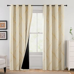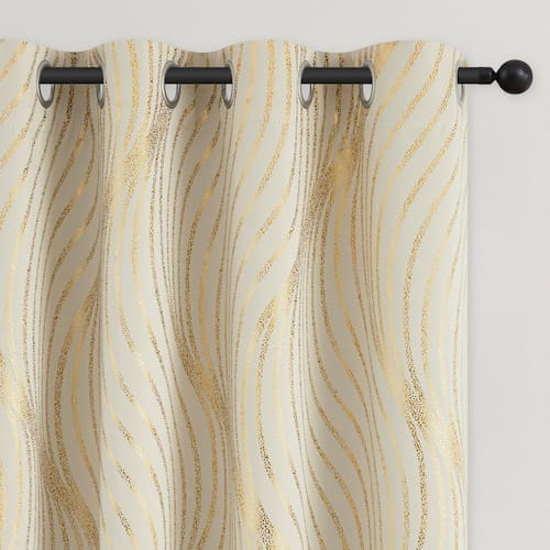 Atualize suas janelas com uma folha dourada em cortinas blackout bege 52X96. Capacidade 100% blackout: cada cortina é feita com 3 camadas de forro, incluindo um forro preto na parte de trás que bloqueia efetivamente 99%-100% da luz. Se você precisa tirar uma soneca durante o dia ou desfrutar de uma noite de cinema sem qualquer interferência de luz externa, essas cortinas proporcionam uma experiência completa de blecaute, ajudando você a relaxar e aproveitar seu tempo pessoal. O design de ponto de linha de onda matálico adiciona um toque de elegância e pode complementar vários estilos de interiores, do contemporâneo ao clássico. Estas cortinas para ambientes não são apenas sobre estilo e controle de luz, mas também sobre eficiência energética. O recurso de isolamento térmico ajuda a regular a temperatura em seu quarto, mantendo o calor fora durante o verão e mantendo o calor durante o inverno. O design de ilhós permite fácil instalação e deslizamento suave das cortinas. Os ilhós são feitos de metal durável, garantindo uso duradouro. Este design também adiciona um toque moderno à aparência geral das cortinas. O pacote inclui dois painéis, cada um medindo 244 cm de comprimento. Isso oferece ampla cobertura para a maioria das janelas padrão, garantindo que seu quarto esteja bem vestido e funcional. Uso versátil: embora essas cortinas sejam ideais para quartos e salas de estar, elas também podem ser usadas em outras áreas da sua casa, como cozinha, sala de jantar ou escritório em casa. Seu design versátil as torna adequadas para qualquer cômodo que exija controle de luz e estilo. O material de alta qualidade utilizado nessas cortinas não é apenas durável, mas também fácil de limpar. Basta lavar à máquina em água fria e secar em temperatura baixa para melhores resultados. O tecido grosso também oferece um grau de redução de ruído, ajudando a criar um ambiente mais silencioso e tranquilo. Estas cortinas ajudam a proteger seus móveis, pisos e obras de arte contra desbotamento, bloqueando os raios UV prejudiciais. - Pronto: cada painel mede 132 L x 96 C, com 2 painéis incluídos. A estampa de pontos dourados metálicos Xwincel em cortinas bege creme traz elegância e um toque elegante a qualquer cômodo da sua casa - Brilho dourado metálico: a clássica estampa de pontos de onda dourada nas cortinas adiciona um toque moderno e bonito. Seja no quarto ou na sala de estar, estas cortinas complementam perfeitamente sua decoração - Blecaute eficaz: estas cortinas de 3 camadas com forro preto bloqueiam 100% da luz, equilibram as temperaturas internas e externas, reduzem o ruído e bloqueiam os raios UV. Ideal para home theater ou aqueles que precisam de um ambiente silencioso e escuro durante o dia - Parte superior com ilhós: cada painel de cortina possui 8 ilhós metálicos prateados com um diâmetro interno de 4 cm, ajustando-se à maioria das hastes para fácil instalação e deslizamento suave - Fácil de cuidar: permite lavar à máquina com água fria, secagem em baixa temperatura e passar a ferro em baixa temperatura, sem branqueamento