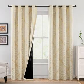 Atualize suas janelas com uma folha dourada em cortinas blackout bege creme 52X84. Capacidade 100% blackout: cada cortina é feita com 3 camadas de forro, incluindo um forro preto na parte de trás que bloqueia efetivamente 99%-100% da luz. Se você precisa tirar uma soneca durante o dia ou desfrutar de uma noite de cinema sem qualquer interferência de luz externa, essas cortinas proporcionam uma experiência completa de blecaute, ajudando você a relaxar e aproveitar seu tempo pessoal. O design de ponto de linha de onda matálico adiciona um toque de elegância e pode complementar vários estilos de interiores, do contemporâneo ao clássico. Estas cortinas para ambientes não são apenas sobre estilo e controle de luz, mas também sobre eficiência energética. O recurso de isolamento térmico ajuda a regular a temperatura em seu quarto, mantendo o calor fora durante o verão e mantendo o calor durante o inverno. O design de ilhós permite fácil instalação e deslizamento suave das cortinas. Os ilhós são feitos de metal durável, garantindo uso duradouro. Este design também adiciona um toque moderno à aparência geral das cortinas. O pacote inclui dois painéis, cada um medindo 213 cm de comprimento. Isso oferece ampla cobertura para a maioria das janelas padrão, garantindo que seu quarto esteja bem vestido e funcional. Uso versátil: embora essas cortinas sejam ideais para quartos e salas de estar, elas também podem ser usadas em outras áreas da sua casa, como cozinha, sala de jantar ou escritório em casa. Seu design versátil as torna adequadas para qualquer cômodo que exija controle de luz e estilo. O material de alta qualidade utilizado nessas cortinas não é apenas durável, mas também fácil de limpar. Basta lavar à máquina em água fria e secar em temperatura baixa para melhores resultados. O tecido grosso também oferece um grau de redução de ruído, ajudando a criar um ambiente mais silencioso e tranquilo. Estas cortinas ajudam a proteger seus móveis, pisos e obras de arte contra desbotamento, bloqueando os raios UV prejudiciais. - Pronto: cada painel mede 132 L x 214 C, com 2 painéis incluídos. A estampa de pontos dourados metálicos Xwincel em cortinas bege creme traz elegância e um toque elegante a qualquer cômodo da sua casa - Brilho dourado metálico: a clássica estampa de pontos de onda dourada nas cortinas adiciona um toque moderno e bonito. Seja no quarto ou na sala de estar, estas cortinas complementam perfeitamente sua decoração - Blecaute eficaz: estas cortinas de 3 camadas com forro preto bloqueiam 100% da luz, equilibram as temperaturas internas e externas, reduzem o ruído e bloqueiam os raios UV. Ideal para home theater ou aqueles que precisam de um ambiente silencioso e escuro durante o dia - Parte superior com ilhós: cada painel de cortina possui 8 ilhós metálicos prateados com um diâmetro interno de 4 cm, ajustando-se à maioria das hastes para fácil instalação e deslizamento suave - Fácil de cuidar: permite lavar à máquina com água fria, secagem em baixa temperatura e passar a ferro em baixa temperatura, sem branqueamento