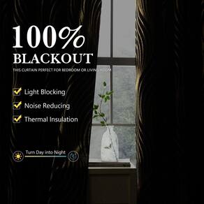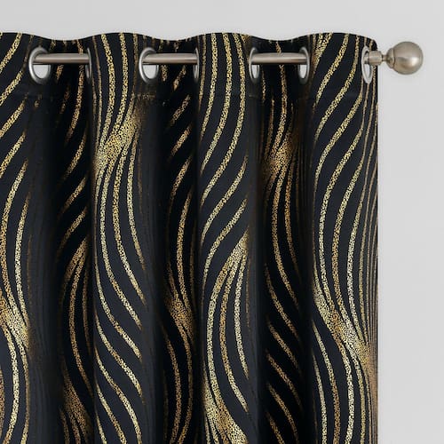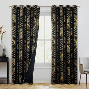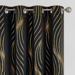 Cortinas Blackout Xwincel Black Gold Wave Line Dot 214cm
