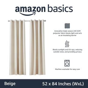 Amazon Basics Room Darkening 84 polegadas de comprimento, cortinas de janela opacas, 2 painéis com ilhós, para sala de estar e quarto, 52 x 84 polegadas, bege