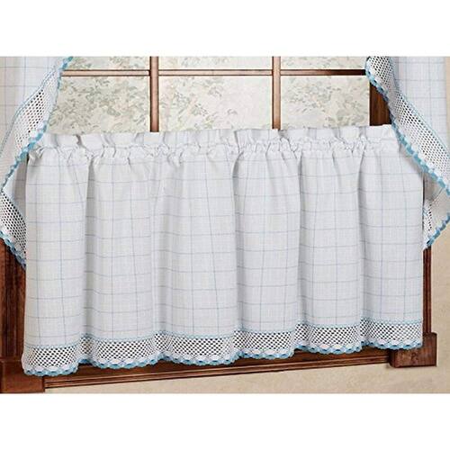Sweet Home Collection Adirondack Par de cortinas de janela de cozinha de algodão, 61 cm, branco/azul - Cor: Branco/Azul - Padrão: painel de janela clássico - Estilo da cortina: 24 camadas - Construção: 1,5 bolso de haste - Material: 100% algodão