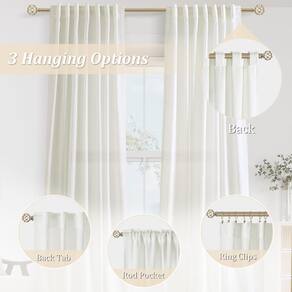- 1 peça por pacote, opções de pendurar versáteis: cada design de painel de cortina semitransparente oferece várias opções de montagem, (1) usando um design de aba traseira de 7,6 cm para criar um efeito plissado elegante com facilidade; (2) usar um bolso de haste de 7,6 cm cria um visual clássico; (3) Usando anéis de clipe para abrir e fechar facilmente (anéis de clipe não estão incluídos), você pode personalizar facilmente a aparência de suas cortinas para se adequar ao seu estilo pessoal e preferências.