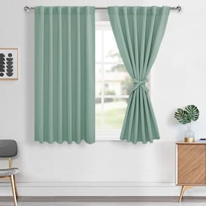 As cortinas blackout Hiasan Rod Edição de Bolso e Back Tab com 2 prendedores ajudam a manter suas cortinas abertas com o mínimo de esforço. Você pode reduzir despesas extras para seus tratamentos de janela. Para amarrar as duas extremidades dos prendedores e depois ajustá-lo de acordo com a espessura da sua cortina. Estas cortinas blackout pesadas oferecem uma solução contemporânea para segurar cortinas sem a necessidade de ferramentas ou perfurar furos no acabamento ou nas paredes. Características: Bloqueia 85%-206% da luz solar e dos raios UV Isolamento térmico e redução de ruído Proteção espessa e de privacidade Disponível em vários tamanhos e cores Quanto mais escura a cor, melhor o desempenho do blecaute Fácil de cuidar: Lavar à máquina em água fria. Secar em temperatura baixa. Passar a ferro a baixa Não usar alvejante - Informações básicas: Seu pacote inclui um conjunto de 2 painéis de cortina. Cada painel mede 52 W por 45 L polegadas com 3 estilos de pendurar para escolher: laços traseiros, bolso para haste ou com seus próprios anéis de clipe - Design especial: Swen com 2 laços em ambos os lados da cortina, você pode apertar ou desatar as cortinas para controlar a luz de acordo com sua preferência e você não precisa gastar dinheiro em laços extras de cortina - Efeito blackout: estas cortinas blackout podem reduzir e bloquear 85%-98% da luz solar (as cortinas de cor escura funcionam melhor), equilibrar a temperatura interna e externa e proporcionar uma boa noite de sono ou um bom ambiente de descanso - Conforto: essas cortinas térmicas são eficazes para evitar tanto o frio no inverno quanto o calor no verão, enquanto protegem seus móveis da luz UV prejudicial. Perfeito para sala de estar, berçário, quarto, hotel e mais - Instruções de cuidados: Lavável na máquina em água fria, ciclo delicado, secar em temperatura baixa, não usar alvejante, passar a ferro em baixa temperatura, se necessário. Meça o tamanho do mastro e da janela antes de escolher as cortinas. com qualquer problema