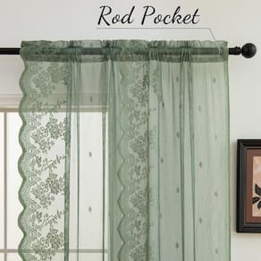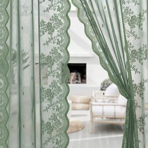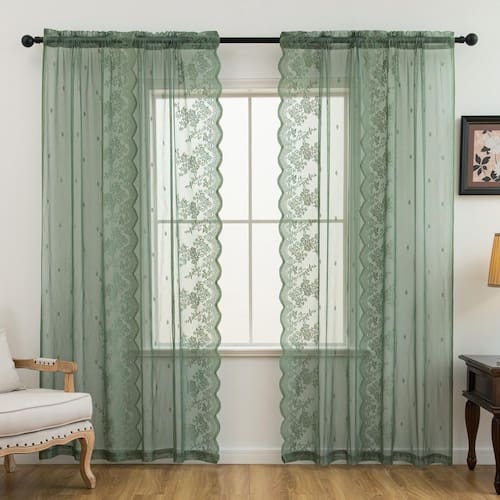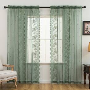 - O pacote inclui: 2 painéis de cortinas transparentes de renda. Feito de tecido de renda de alta qualidade, ambos os lados com bordas de babados em forma de vieira. Cada painel mede 52" de largura x 72" de comprimento.