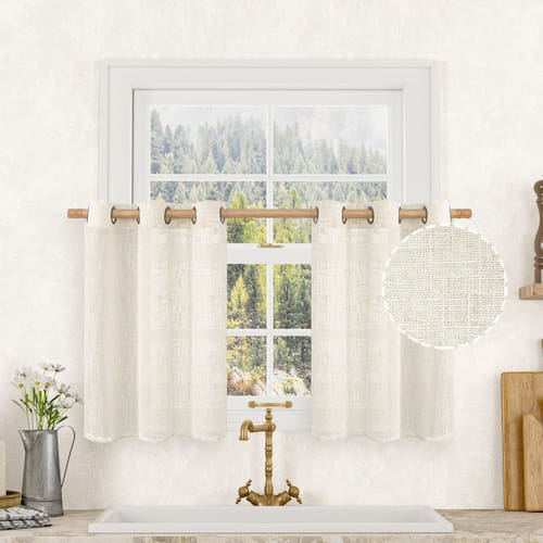 As cortinas neutras semitransparentes de linho sintético LAMIT proporcionam um ambiente tranquilo e silencioso. Selecionamos tecidos de alta qualidade, desenvolvemos constantemente novas tecnologias, temos uma compreensão profunda das várias necessidades dos clientes e produzimos cortinas de alta qualidade. Cortinas texturizadas de linho grosso As cortinas de linho são feitas de 20% linho e 80% poliéster, o que é conhecido por sua durabilidade e resistência. Ao contrário de outras cortinas transparentes, o linho é um material mais pesado que oferece melhor isolamento e filtragem de luz. A cortina de linho tem uma textura única que dá uma aparência mais natural e orgânica, com uma superfície ligeiramente irregular que adiciona personalidade e profundidade ao tecido. Essa textura também permite uma melhor difusão de luz, o que significa que as cortinas de linho filtram a luz solar de uma maneira que cria um brilho suave e suave na sala, sem bloquear completamente a luz. - Detalhe da embalagem: O pacote inclui 2 cortinas de linho natural e cada cortina texturizada de linho mede 86 cm de largura e 76 cm de comprimento (172,7 cm de largura total). O estilo superior das cortinas são ilhós de bronze com diâmetro interno de 3,8 cm, se ajustam bem à maioria das hastes. - Textura de linho: nossas cortinas de linho são feitas de 20% linho e 80% poliéster, dando uma aparência mais natural e orgânica, com uma superfície ligeiramente irregular que adiciona personalidade e profundidade ao tecido. Também decore seu quarto elegante e chique, adequado para a sala de estar, quarto, sala de jantar, casa de fazenda e muitas outras ocasiões. - Filtragem de luz: Esta cortina de linho texturizada permite uma melhor difusão de luz, o que significa que a cortina de linho suaviza a luz na sala enquanto permite que o ar fresco flua, criando uma sensação reparadora e arejada - Arejada e respirável: a densidade da mistura de trama das cortinas de linho oferece uma bela luz difusa enquanto reduz o uso de energia e fornece 30% de proteção de privacidade com apenas sombras nebulosas visíveis de dentro de casa, criando um espaço seguro e confortável. - Dicas: nossas cortinas são laváveis na máquina, não branqueadas, e cada cortina de linho é medida quando totalmente aberta. Recomenda-se que a largura da cortina seja maior que 1,5 a 19 vezes a largura da janela, para ajudar você a comprar a cortina certa, meça o comprimento e a altura da janela antes de comprar, aguardando sua compra