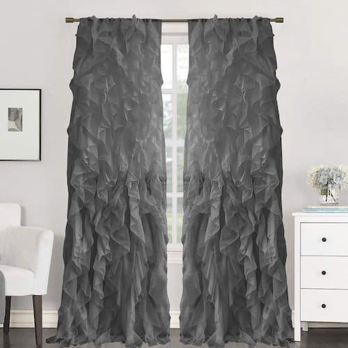 Sweet Home Collection Pacote com 2 cortinas de cascata com babados verticais de voile transparente - Disponível em dois tamanhos: 160 cm de comprimento x 127 cm de largura e 213 cm de comprimento x 127 cm de largura. Observe que essas medidas são para cada painel. - Painel estilo chique gasto apresenta material de poliéster e um padrão sólido com babados verticais - O cabeçote do bolso da haste simplifica a instalação e se encaixa na maioria das hastes padrão de até 3,8 cm de diâmetro - Cada painel contém cascatas espirais de material para um efeito elegante - Lavável na máquina para facilitar o cuidado.