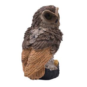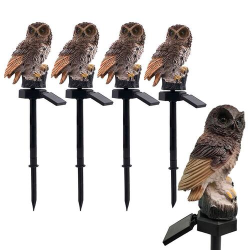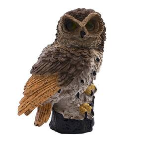 A coruja vem com uma estaca que ajuda a posicioná-la no solo ou onde preferir.