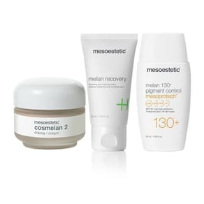 Cosmelan home pack Cosmelan home packTratamento de branqueamento tópico profissional, criado para eliminar ou atenuar as manchas cutâneas adquiridas de origem melânica. Ao mesmo tempo se uniformiza o tom cutâneo e se aumenta o brilho da pele. Informações sobre o produto Procedência: importado País de origem: espanha Fabricante: mesoestetic Conteúdo da embalagem: 1 cosmelan 2 (30g) + melan recovery (50ml) + melan pigement control 130fps (50ml) Validade: 24 meses a partir da data de fabricação Observações: imagens meramente ilustrativas Resultados esperados:Ação clareadora rápida, ao intervir na fase avançada da melanogênese;Especialmente eficaz na redução de manchas de localização epidérmica;Boa tolerância, em todos os fototipos de pele, pois todas as fórmulas de cosmelan foram elaboradas rigorosamente para garantir a máxima tolerância;Branqueamento e luminosidade, pois contém agentes embelezadores que uniformizam o tom da pele.Método de uso: 1 - preparação da pele Limpeza da pele com a solução desengordurante para ajudar na penetração do produto. 2 - creme de manutenção cosmelan 2 Para melhorar a luminosidade e o tom da pele é recomendado utilizar o serum de vitamina c aplicando 2 vezes por semana na face e no pescoço antes da aplicação do cosmelan 2.Aplicar o creme de manutenção cosmelan 2 seguindo o método 3,2,1: 1º mês: 7 aplicações por semana (noite); 2º mês: 4 aplicações (noite); 3º mês: 2 a 3 aplicações (noite).3 - melan recorvery é recomendado a aplicação do creme melan recovery sempre após a aplicação do cosmelan 2 durante todo o tratamento. Importante:Como as manchas melânicas são geralmente devido à exposição ao sol, a falta de proteção solar durante o tratamento despigmentação pode prejudicar a eficácia do tratamento. Portanto, o paciente deverá utilizar sempre um protetor solar. Como protetor solar, indicamos o melan 130+ pigment control, potente protetor solar com 130fps.Cosmelan home packTratamento de branqueamento tópico profissional, criado para eliminar ou atenuar as manchas cutâneas adquiridas de origem melânica. Ao mesmo tempo se uniformiza o tom cutâneo e se aumenta o brilho da pele. Informações sobre o produto Procedência: importado País de origem: espanha Fabricante: mesoestetic Conteúdo da embalagem: 1 cosmelan 2 (30g) + melan recovery (50ml) + melan pigement control 130fps (50ml) Validade: 24 meses a partir da data de fabricação Observações: imagens meramente ilustrativas Resultados esperados:Ação clareadora rápida, ao intervir na fase avançada da melanogênese;Especialmente eficaz na redução de manchas de localização epidérmica;Boa tolerância, em todos os fototipos de pele, pois todas as fórmulas de cosmelan foram elaboradas rigorosamente para garantir a máxima tolerância;Branqueamento e luminosidade, pois contém agentes embelezadores que uniformizam o tom da pele.Método de uso: 1 - preparação da pele Limpeza da pele com a solução desengordurante para ajudar na penetração do produto. 2 - creme de manutenção cosmelan 2 Para melhorar a luminosidade e o tom da pele é recomendado utilizar o serum de vitamina c aplicando 2 vezes por semana na face e no pescoço antes da aplicação do cosmelan 2.Aplicar o creme de manutenção cosmelan 2 seguindo o método 3,2,1: 1º mês: 7 aplicações por semana (noite); 2º mês: 4 aplicações (noite); 3º mês: 2 a 3 aplicações (noite).3 - melan recorvery é recomendado a aplicação do creme melan recovery sempre após a aplicação do cosmelan 2 durante todo o tratamento. Importante:Como as manchas melânicas são geralmente devido à exposição ao sol, a falta de proteção solar durante o tratamento despigmentação pode prejudicar a eficácia do tratamento. Portanto, o paciente deverá utilizar sempre um protetor solar. Como protetor solar, indicamos o melan 130+ pigment control, potente protetor solar com 130fps.