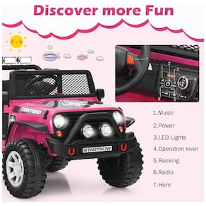 Dois modos de controle 1. Pedais e volante são uma maneira de as crianças dirigirem o carro. 2. O uso do controle remoto parental bateria AAA de 1,5 V não incluída é o contrário. E o último substitui o primeiro. Além disso, há uma alça embaixo do carro para facilitar a movimentação, caso você esqueça de carregar o suficiente na noite passada. Um passeio e suave este caminhão de passeio de 12V possui suspensão de mola dianteira e traseira e uma função de partida lenta para garantir um tempo de reprodução em quase todos os terrenos. Sempre coloque seus filhos no cinto de segurança quando eles entrarem no carro e o amplo assento garante que o passeio seja confortável e alegre. Experiência de condução realista com portas que podem ser abertas, janela frontal de grade ou volante, todos os detalhes requintados são imitados do caminhão real. O carro anda para frente e para trás, e também tem um modo de balanço. Nosso brinquedo de carro ruge quando você liga, as buzinas podem apitar e, com as luzes LED piscando, seu pequeno piloto recebe um passeio o mais realista possível. Opções de música e áudio Com música, este carro de passeio consegue trazer mais alegria para as crianças. Sistema de controle integrado ao equipamento para aumentar muito mais prazer. MP3, saída USB, funções que significam conectar outros dispositivos de música ou conectar telefones para obter mais opções de áudio para a preferência de seus filhos. Um presente de perfeição nosso carro de passeio vem com várias opções de cores e será um grande incentivo para seus filhos com mais de 3 anos. A tampa de PP sólida torna o carro de passeio um prazer duradouro com um peso máximo de 49 kg. Requer 8 12h de carregamento para 1 hora de diversão Marca: Não Informado