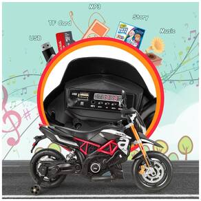 Experiência de condução simples e confortável a tecla de arranque facilita o suficiente para as crianças poderem ou pararem a motocicleta. A função de avanço e retrocesso pode ser realizada por meio do pedal do pé. E o assento curvo se ajusta bem com as curvas do corpo das crianças é capaz de melhorar o nível de conforto ao dirigir. Rodas de treinamento para maior segurança existem 2 rodas de treinamento que mantêm a motocicleta o mais estável possível, evitando que caia para permitir maior segurança. Além disso, a motocicleta é projetada com mola de absorção de choque, garantindo que ela se mova suavemente. Desta forma, você deve confiar que seus filhos dirigem. Ande em uma variedade de solos as rodas com excelente resistência ao desgaste permitem que as crianças andem em todos os tipos de chão, do chão de madeira ao cimento, da pista de corrida de plástico até a estrada de cascalho. Quase não há limitação para lugar, as crianças podem desfrutar do seu tempo de condução. Além disso, o padrão de pneu antiderrapante aumenta a fricção com a estrada, capaz de melhorar a segurança ainda mais. Música e histórias alegres crianças a motocicleta adota várias músicas e histórias interessantes para divertir extremamente seus filhos. Ou seus filhos podem ouvir suas músicas preferidas, desde que você conecte o dispositivo de música com USB e porta MP3 instaladas. O volume ajustável adiciona mais conveniência. Além disso, o farol e a lanterna traseira são capazes de trazer brilho na escuridão. Presente legal ideal para crianças não é necessário dizer, a motocicleta com aparência elegante vai atrair a atenção das crianças à primeira vista, perfeita como presente de aniversário e Natal para elas. Vai acompanhar seus filhos e criar memórias alegres de infância. Não precisa se preocupar com o uso de segurança, pois é feito de materiais selecionados e certificado pela ASTM Marca: Não Informado