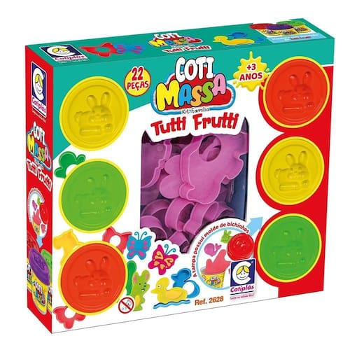 Este conjunto possui um total de 6 potes de massinha colorida, cada um com um molde diferente. As cores vibrantes e o cheirinho de frutas tornam a brincadeira ainda mais atrativa. A Coti Massa Tutti Frutti Família é um produto seguro e que vai proporcionar momentos de diversão em família. Idade recomendada: A partir de 3 anos. Selo Inmetro: CE-BRI/IQB 0228 IQB-OCP 009.