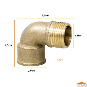 Conexão Cotovelo Joelho 90º em Latão com Roscas Macho x Fêmea de 1/2"