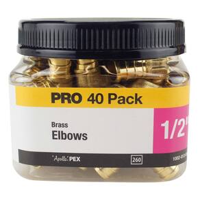 Frasco de cotovelo ApolloPex de 1/2" em latão PEX Barb de 90° (pacote com 40)